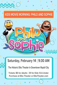 KID’S MOVIE AT THE ELKS!! Healing the Culture presents Philo and Sophie -- the zany children’s show with a Christian message. Join us Saturday, February 14th at 9:30am for a morning of family fun, and meet the actors, puppets, and crew in-person! $5 for teens and adults, $1 for kids 12 and under.